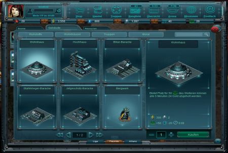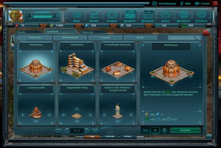 • entscheide dich zwischen Menschen und Aliens Ganz am Anfang steht deine Entscheidung auf welcher Seite du kämpfen willst. Bei Future Torpia hast du die Wahl, für welche Fraktion du in die Schlacht ziehen wirst. Du kannst einerseits als Mensch die Bildfläche betreten und die Verteidigung der Erde anstreben, oder andererseits als Alien versuchen diese zu vernichten. Sobald du deine Wahl getroffen hast, wird dir eine Basis zugewiesen. Diese ist zu Beginn natürlich noch sehr spärlich ausgestattet und verfügt nur über das nötigste. Deine Aufgabe wird es sein, diese weiter auszubauen und mit zahlreichen Truppen auszustatten. Dafür brauchst du unzählige Rohstoffe. Grundsätzlich hast du drei verschiedene Möglichkeiten um an Rohstoffen zu gelangen. Future Torpia ist mit einem hervorragenden und sehr umfangreichen Quest-System ausgestattet, in dem es viele verschiedene Missionen zu erfüllen gibt. Versuche dich erst einmal an den einfacheren Herausforderungen, um abschätzen zu können, wie schlagkräftig du schon bist. Nach und nach kannst du dich dann an die richtig harten Kaliber wagen. Auch im Krieg gegen andere Spieler kannst du Rohstoffe gewinnen. Der PvP-Modus gibt dir die Möglichkeit, andere Spieler aus der Online Community herauszufordern und zu besiegen. Der dritte und letzte Weg, um an neue Ressourcen zu kommen, ist der Handel. Dieser ist bei Future Torpia sehr ausgeprägt und fordert einen gewissen Geschäftssinn ein, wenn du gewinnbringend Güter tauschen willst. Beginne am besten gleich damit, eine schlagkräftige Armee zusammenzustellen und ziehe in den Krieg! |